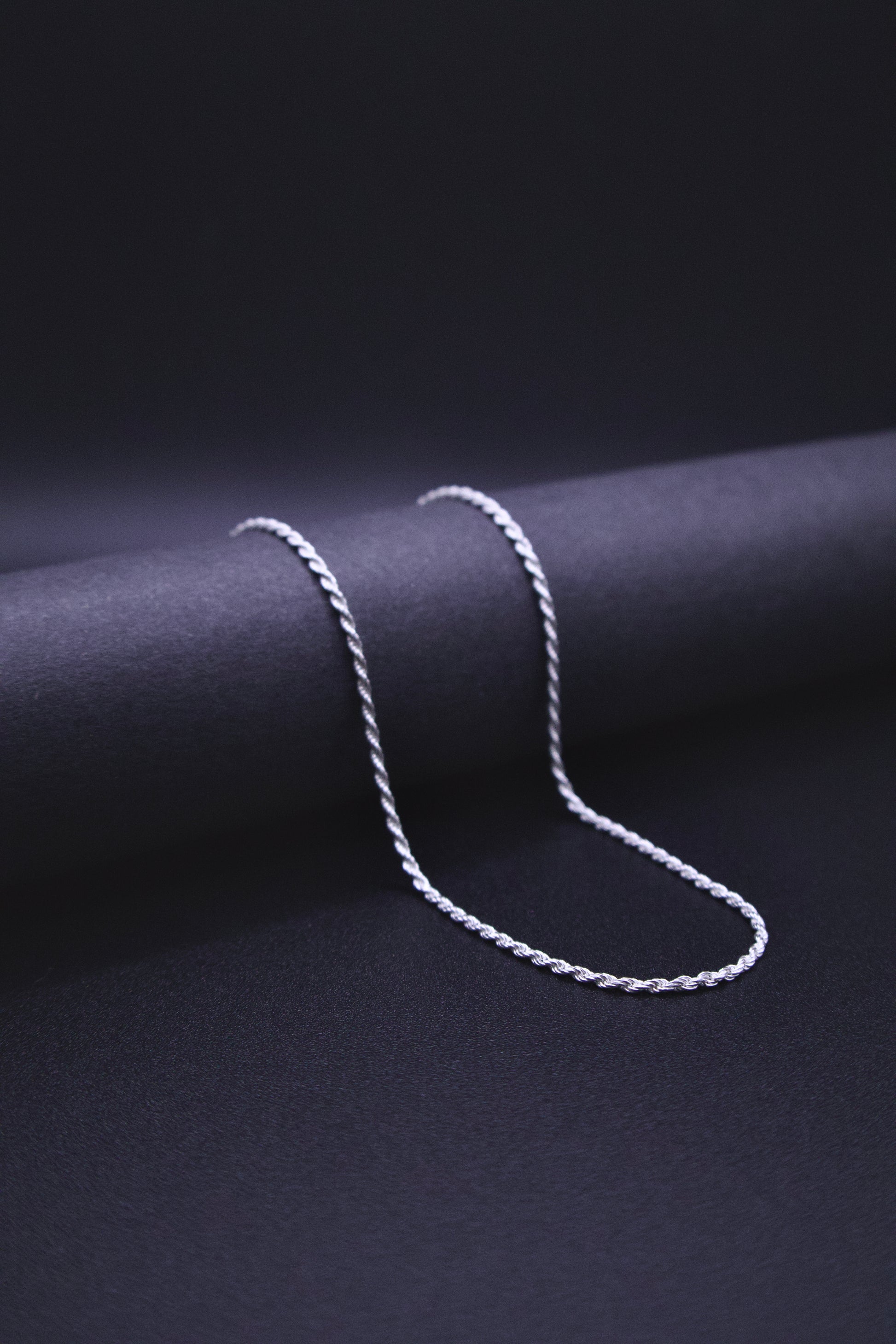 Description: 16” fancy Italian rope chain. 2.5mm thick. Lobster claw. Can be `worn alone or with one of our lovely pendants.