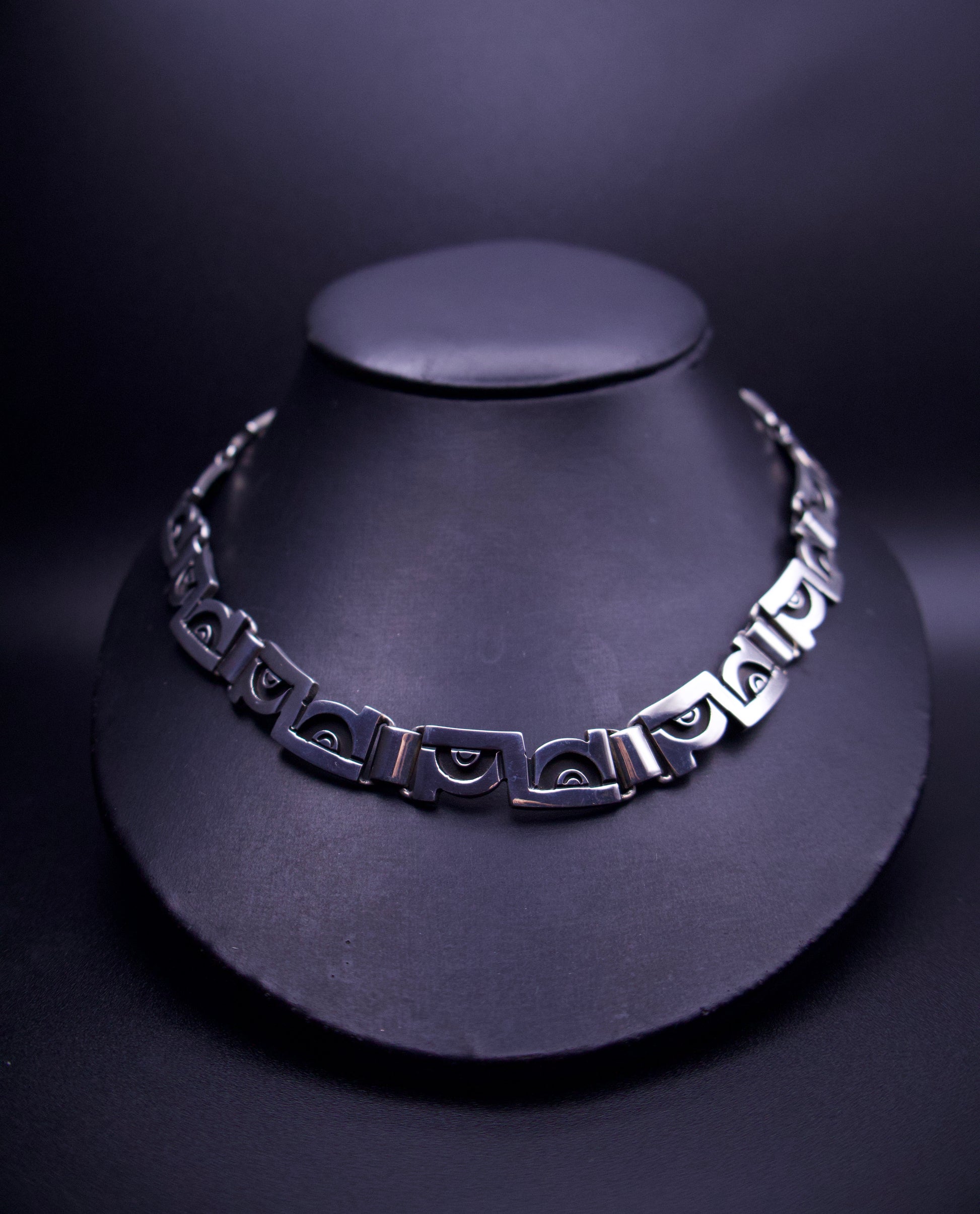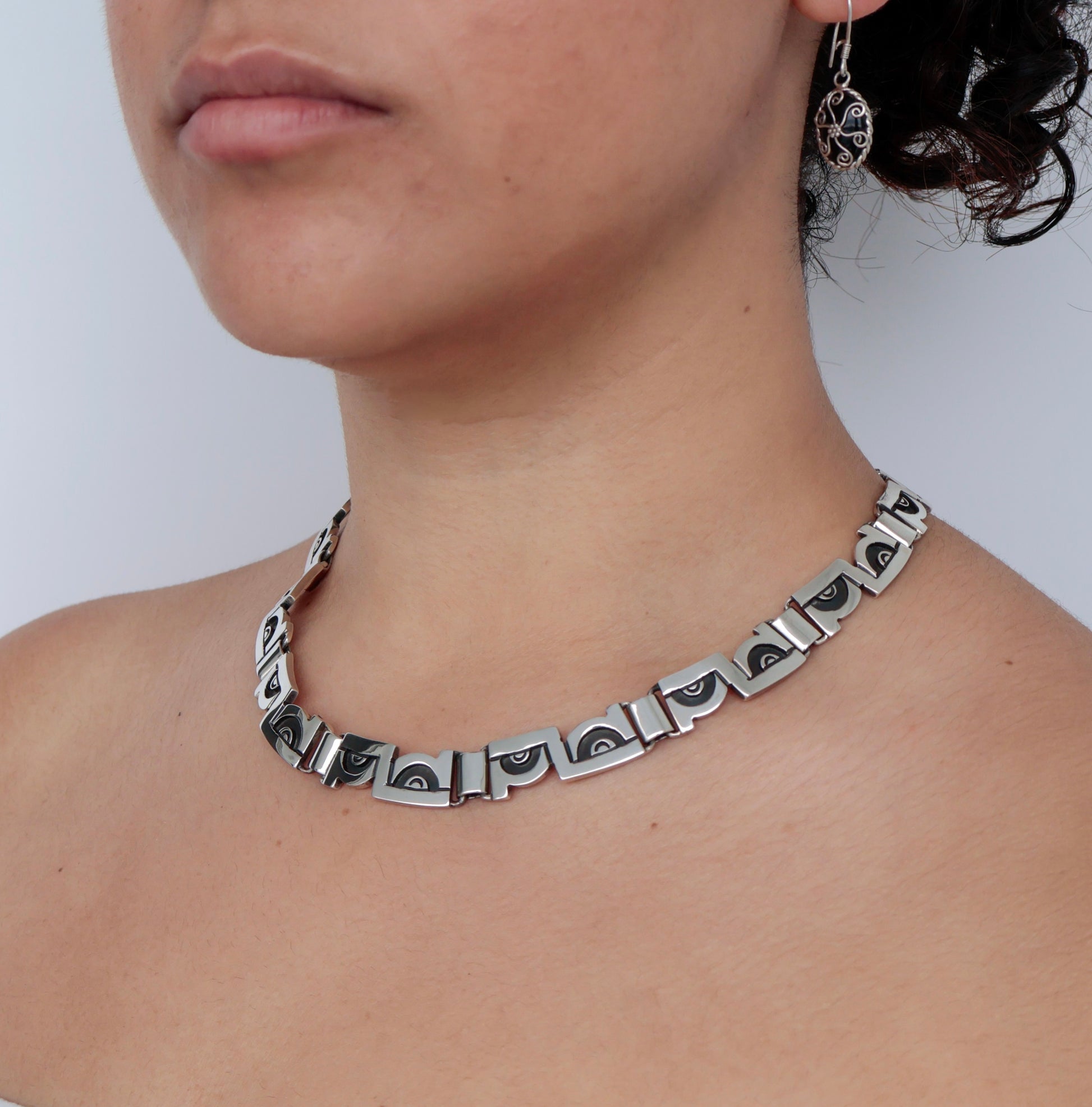 Sterling Silver Necklace by Jose Luis Flores. Vintage 1940's look. Hallmarked JLF. A Collection piece. Design is Oxidized in relief.