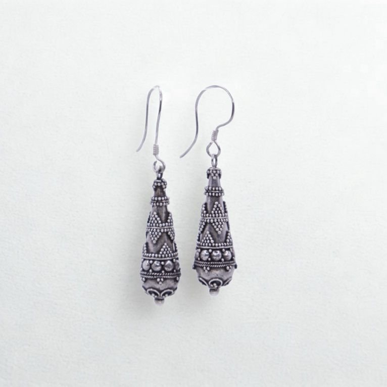 The Palace earrings feature an intricate handcrafted design, enhanced by an oxidized finish for striking contrast. A timeless piece that exudes elegance and artistry.