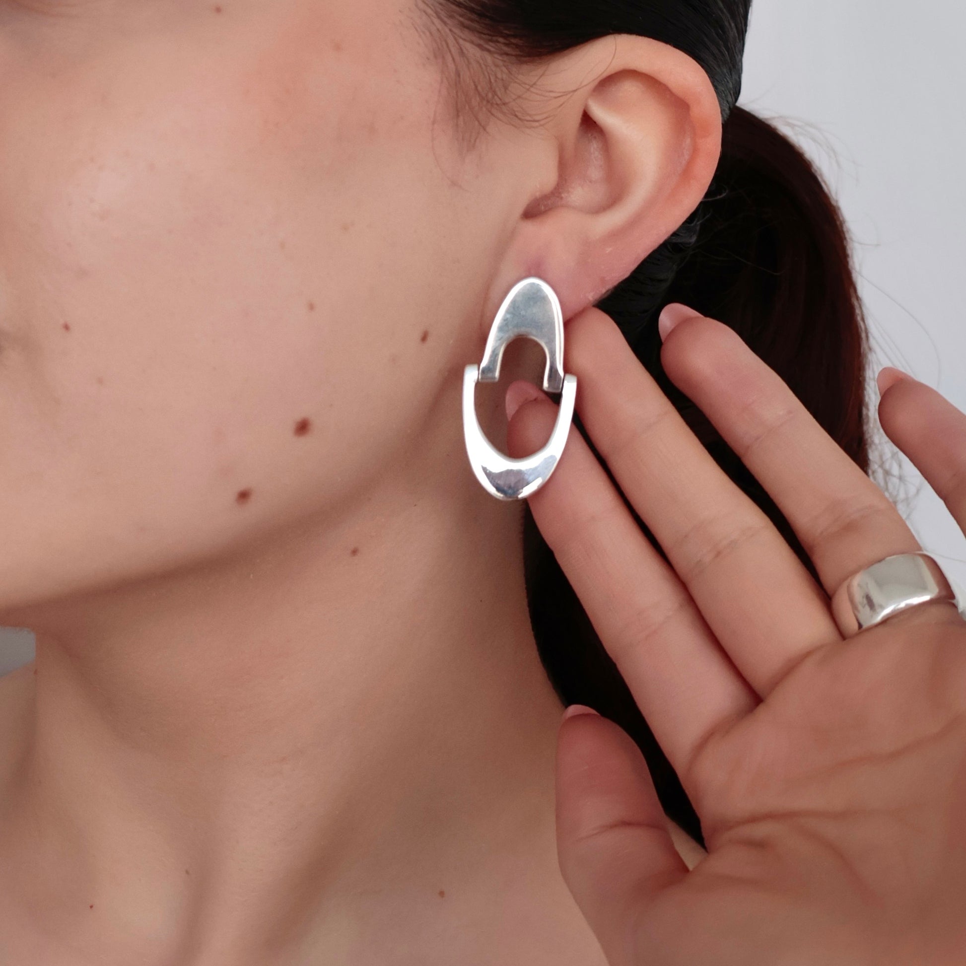 Elegant sterling silver contemporary drop earring. Silver Street exclusive.