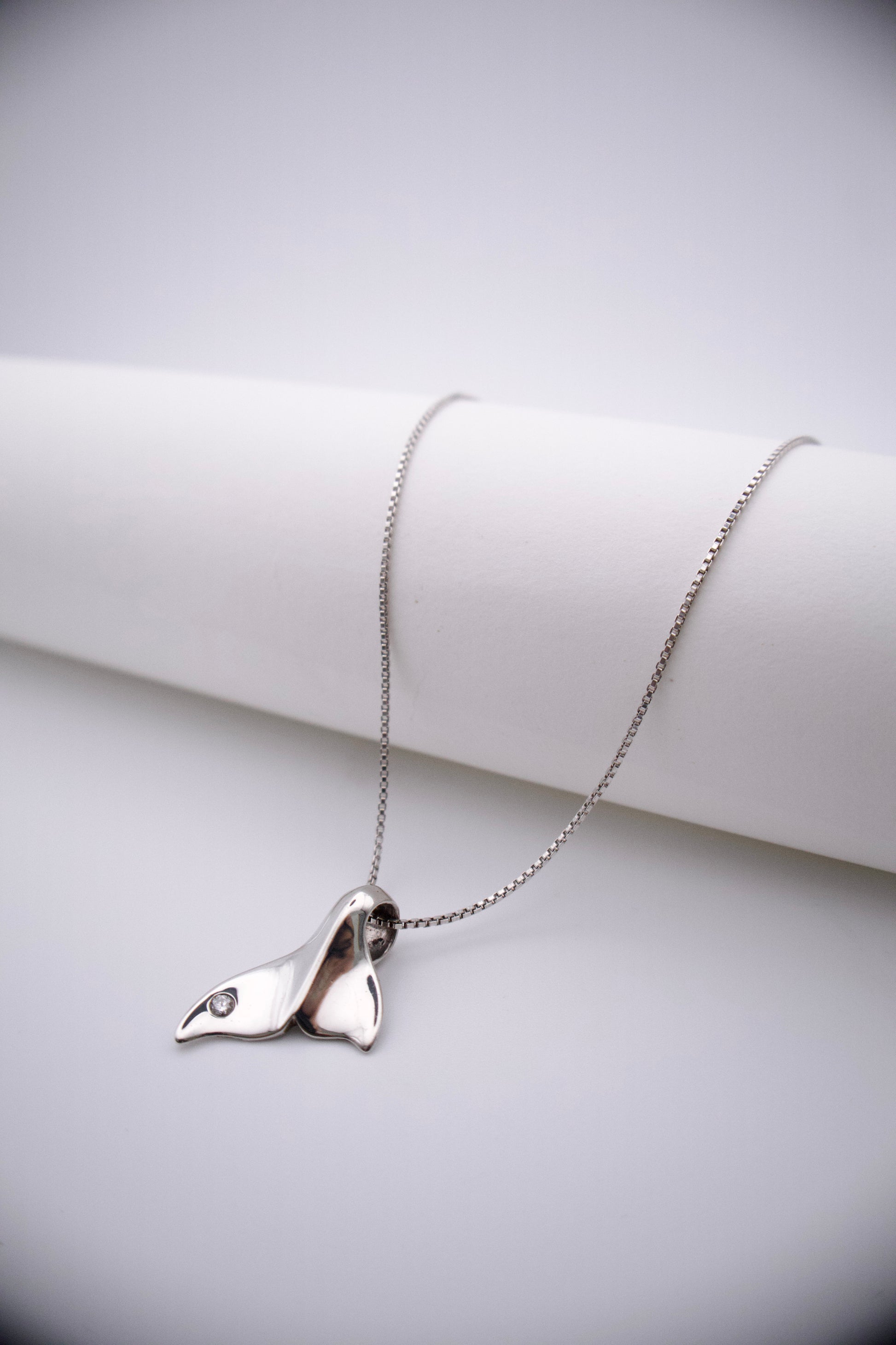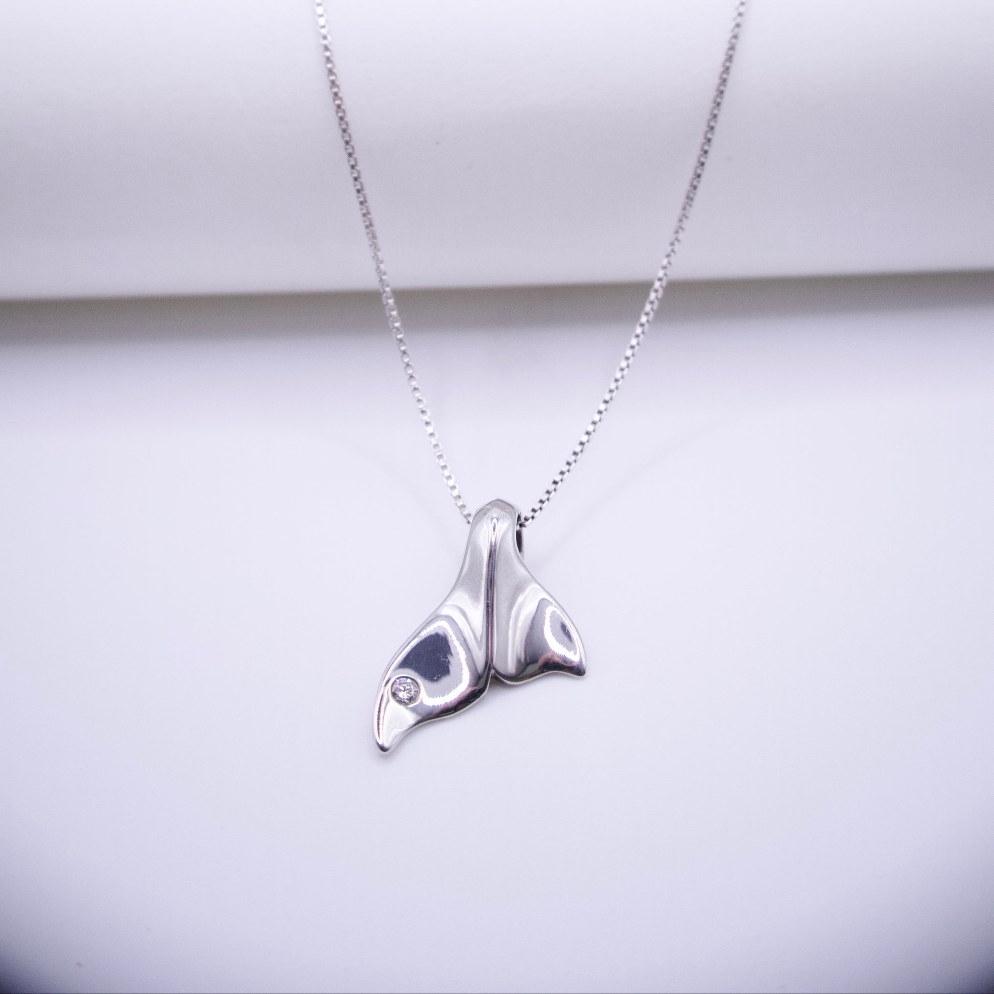 Silver street exclusive design. sterling silver whale tail with five point genuine diamond.